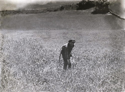 | შინაარსი: | ფოტოზე გამოსახულია ბიჭი, რომელსაც ხელში უკავია დისკოს ფორმის არყის ხის ტოტების წნული-ჩჩნილ, თითო ჩჩნილს არჭობდნენ ყანის შუაგულში ავი თვალისგან დაცვის მიზნით. | |