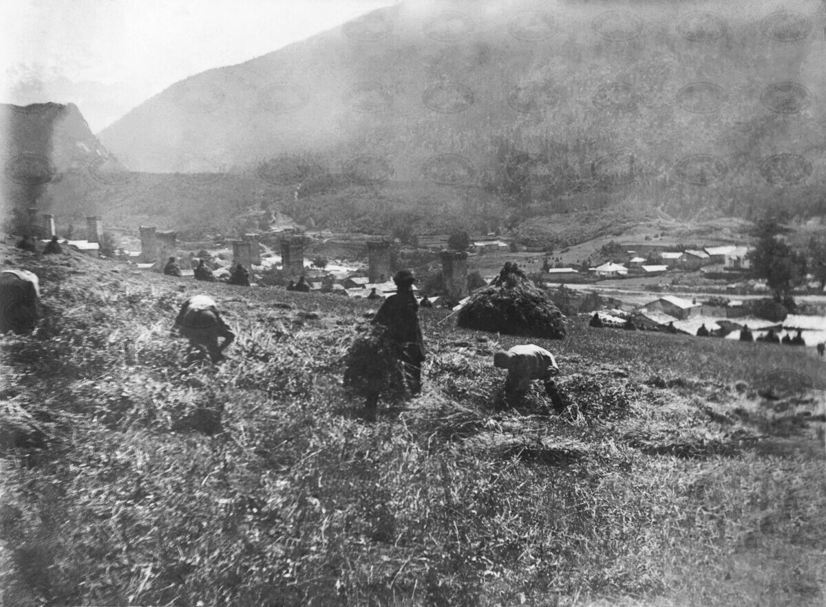 | შინაარსი: | ფოტოზე გამოსახულია მკის პროცესი სვანეთში. | |
