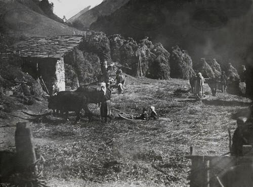 | შინაარსი: | ფოტოზე გამოსახულია ხარებში შებმული კევრით მოსავლის გალეწვის პროცესი, კევრზე შემომჯდარი ბავშვები | |
