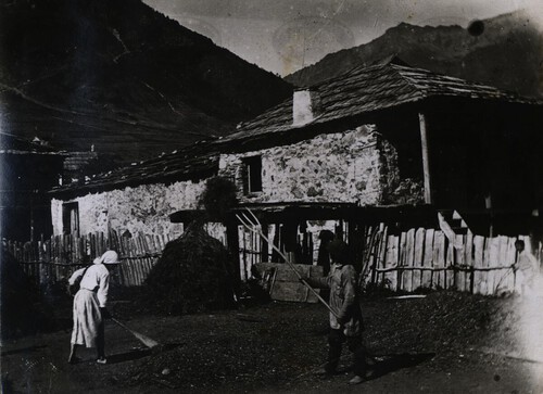 | შინაარსი: | ფოტოზე გამოსახულია მარცვლეულის განიავების სამუშაო | |