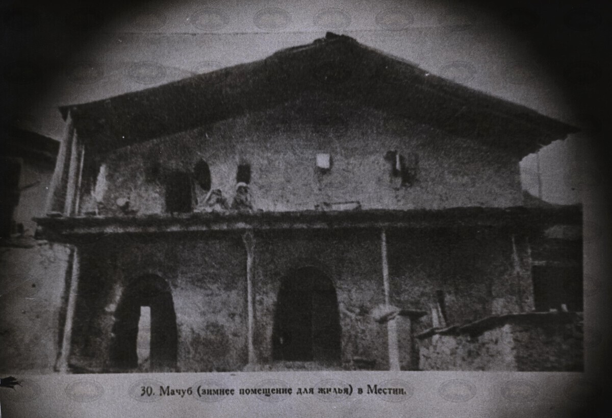 | შინაარსი: | სვანური ორსართულიანი სახლის წინხედი | |