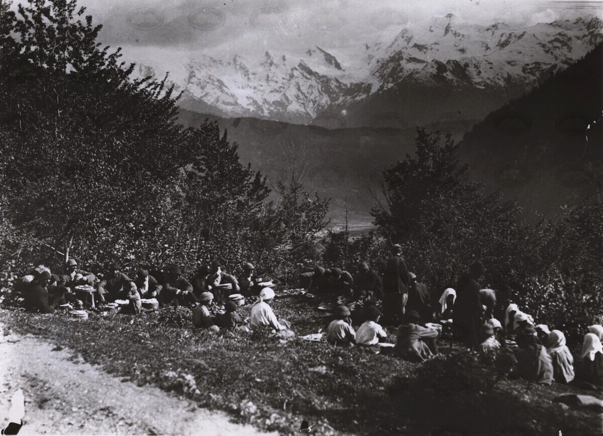 | ავტორისეული აღწერა: | "წარწერა უკანა გვერდზე: №29 ”фот. Д. Кожевниковой. 25/V 1931 г. Ст.ст. Бечви. День holish Трапеза в священной рощи после жертвоприношения.""" | |