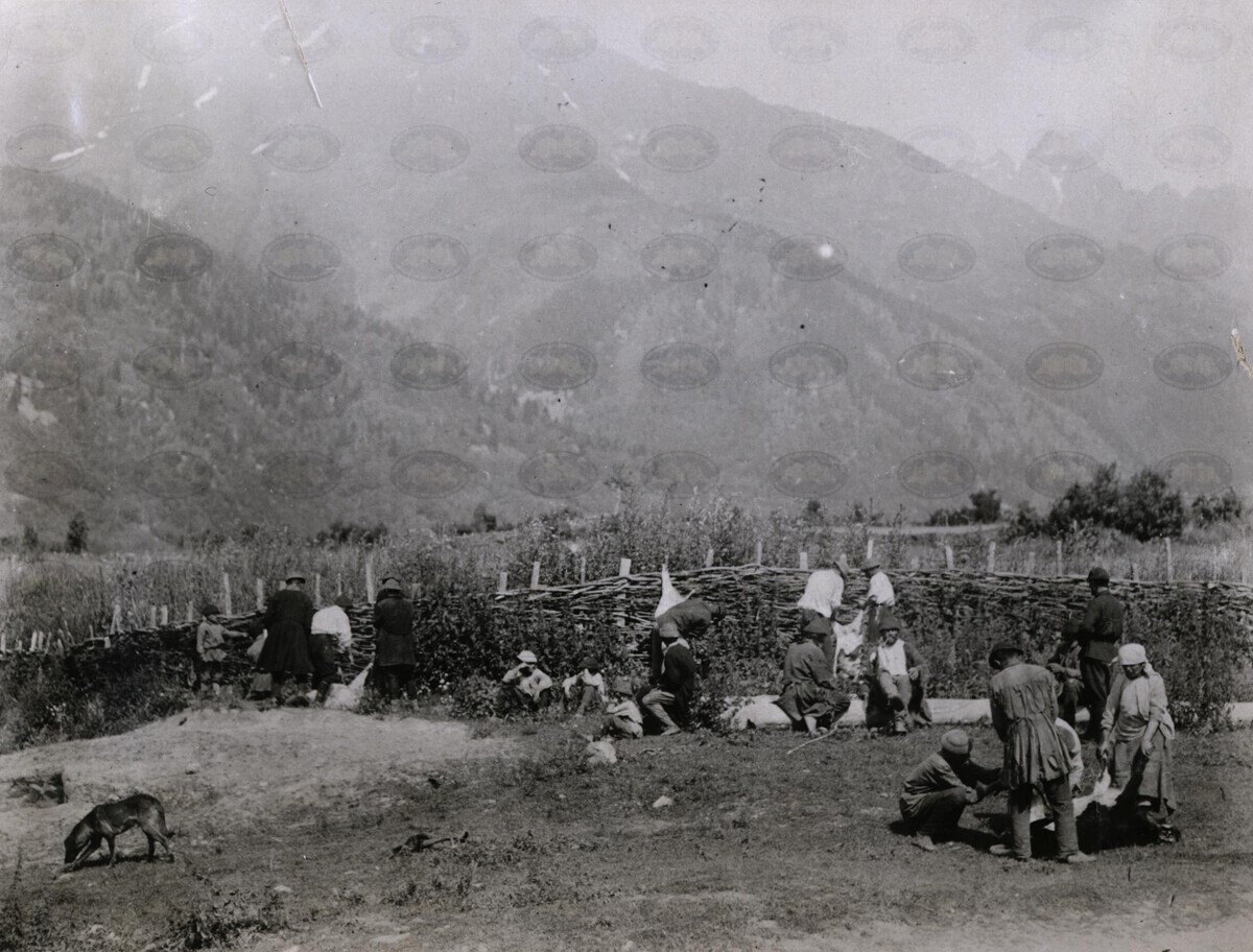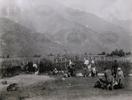 | ავტორისეული აღწერა: | "წარწერა უკანა გვერდზე: ”фот. Д. Кожевниковой. 29/VI -1931 <Бечви. Сел. Мазер. День раrроldаш. Обдирание кожи жертвен. животных""" | |