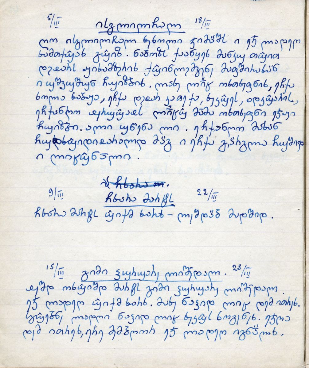 | ავტორისეული აღწერა: | 05/03 “ისგლილჩìლ“ 18/03 | |