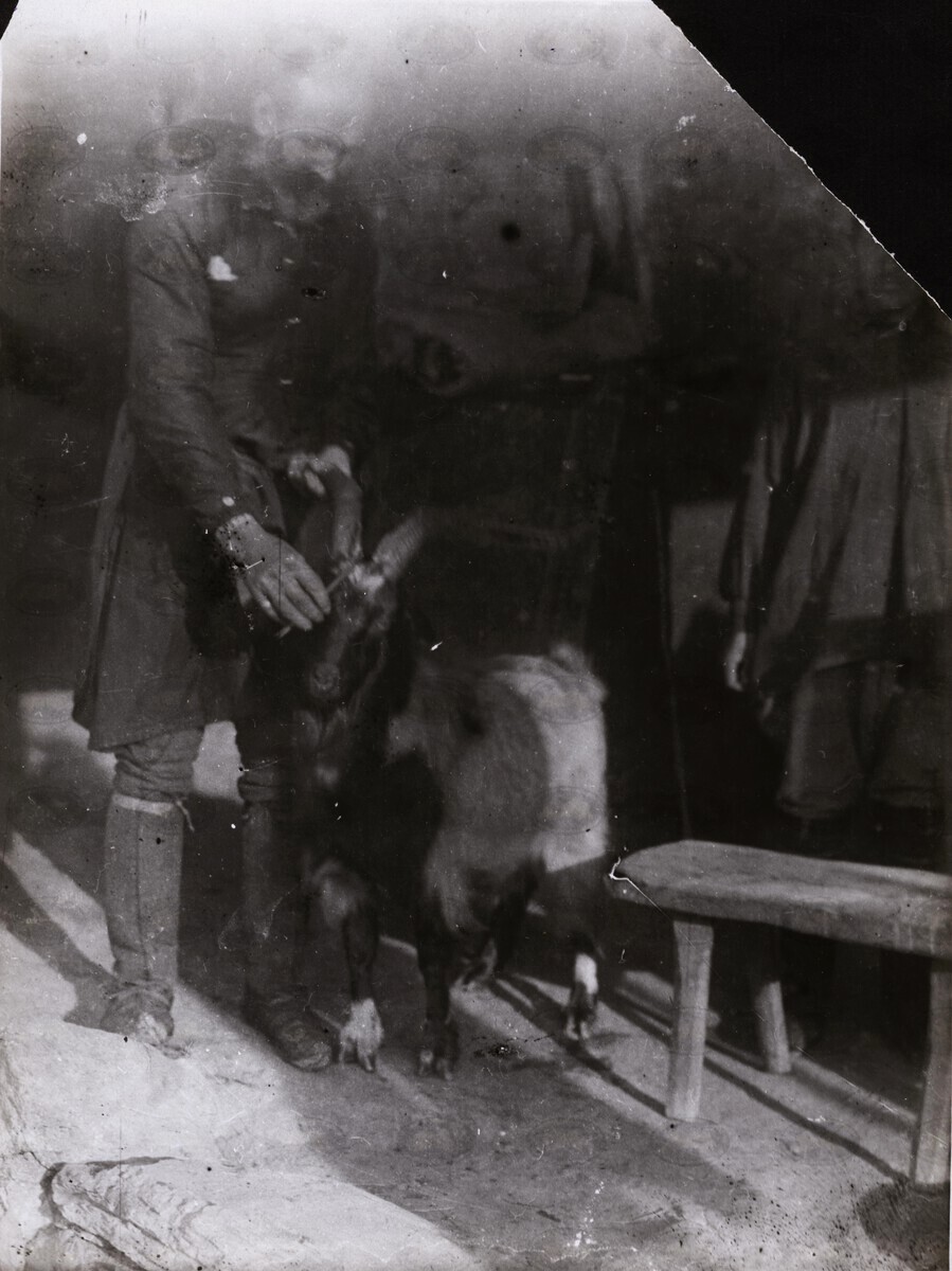 | ავტორისეული აღწერა: | "ნაკლული, წარწერა უკანა გვერდზე: №14 фото Д. Кожевниковой. 6/I 1931 г. По ст.ст. Латли. Село Мацхвариши. Хозяйство Гуаярма Гиргвлиани. День ganlqdab"" принесение в жертву козла"" " | |