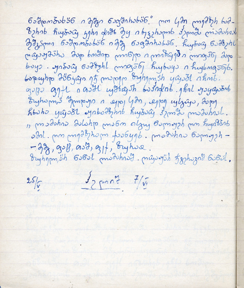 | შინაარსი: | 24/05 ჰèლშა საფტინ 06/04 ალèნგვერის მერე პირველი შაბათი არის ჰèლიში. . იმ კვირაში ალნგვერიდან ჰèლიშის შაბათამდე რძეს არ ვსვამთ (ფურლე ნìშგს), თხების რძეს კი, ძროხებისას-არა. შაბათს ჰლიშია. იმ დღეს პირველად სახლში ხაჭაპურებს დავაცხობთ და ყველს მოვხარშავთ და შევავედრებთ ჰèლიშის ლამარიას. ვევედრებით ძროხების სიმრავლიდან. მერე მიცვალებულის სუფრისთვის მოვემზადებით, მათაც ვახსენებთ ამ აღვლენილი ხაჭაპურებით და მოხარშული ყველით. იმ დღეს კიდევ ქალები, ოჯახიდან თითო, ერთ სახლში შეიკრიბებიან. წაიღებენ ყველს და ფქვილს. უფროსი ქალები დააცხობენ პურებს და აღავლენენ ჰèლშა ლამარიას სახელზე მწველავი ქალების მშვიდობასა და მეწველი საქონლის სიმრავლისთვის | |