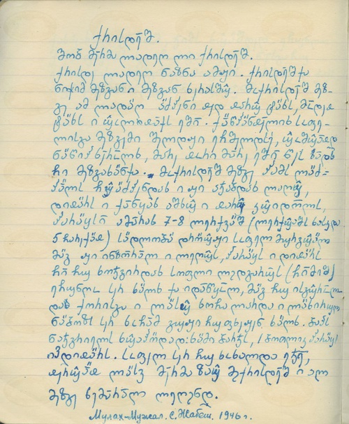 | ავტორისეული აღწერა: | მულახ–მუჟალი, ს. ჟაბეში 1946 წ. | |