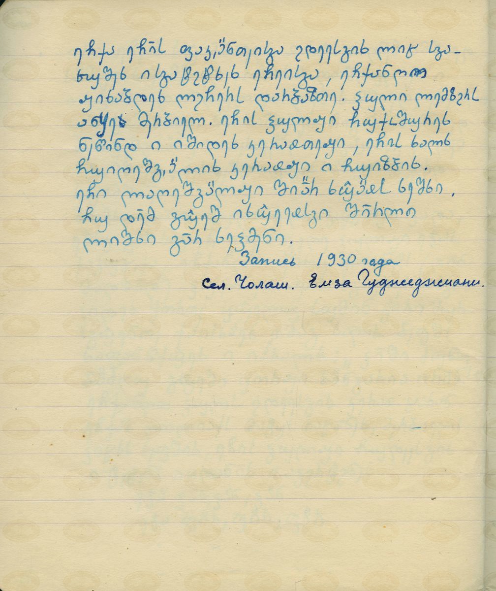 | ავტორისეული აღწერა: | მასალა ჩაწერილია მულახის თემის სოფელ ჭოლაში. მთხრობელი: ემზა გუჯეჯიანი 1930 წელი | |