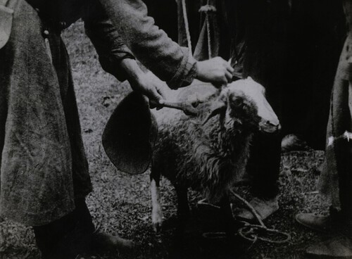 | შინაარსი: | ფოტოზე დაფიქსირებულია ცხვრის შეწირვის ერთ-ერთი წესი- ბეწვის სანთლის ალით მოწვის მომენტი | |