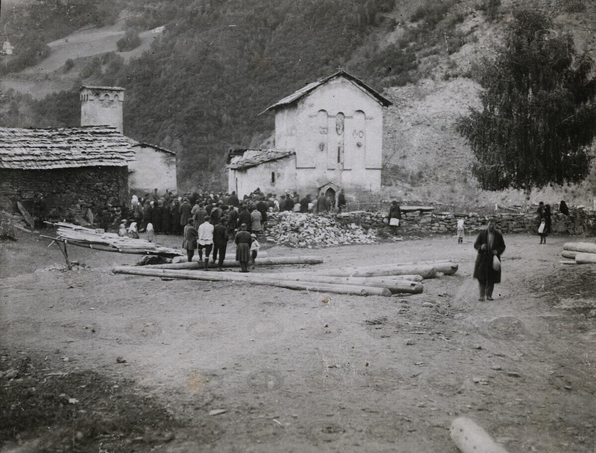 | შინაარსი: | დაკრძალვა იფარის თემში, სოფ. ნაკიფარში.ფოტოზე აღბეჭდილია სოფ. ნაკიფარის ეკლესია, სასაფლაო, დაკრძალვის ცერემონიალზე თავმოყრილი სოფლის მოსახლეობა | |