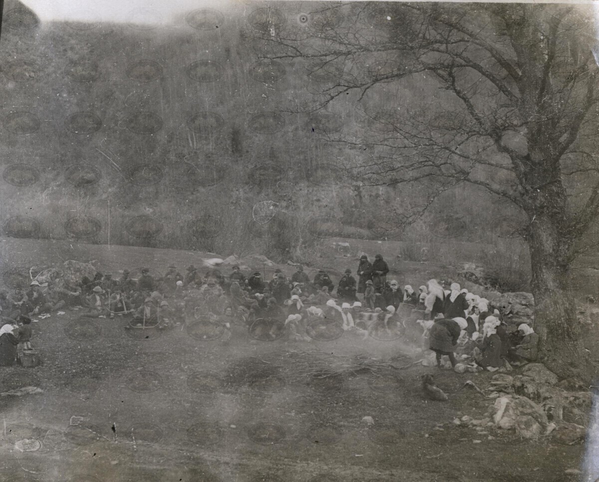 | ავტორისეული აღწერა: | Приготовление жертвенных хлебов и жертвоприношение их у подножия священного дуба. Бечо | |