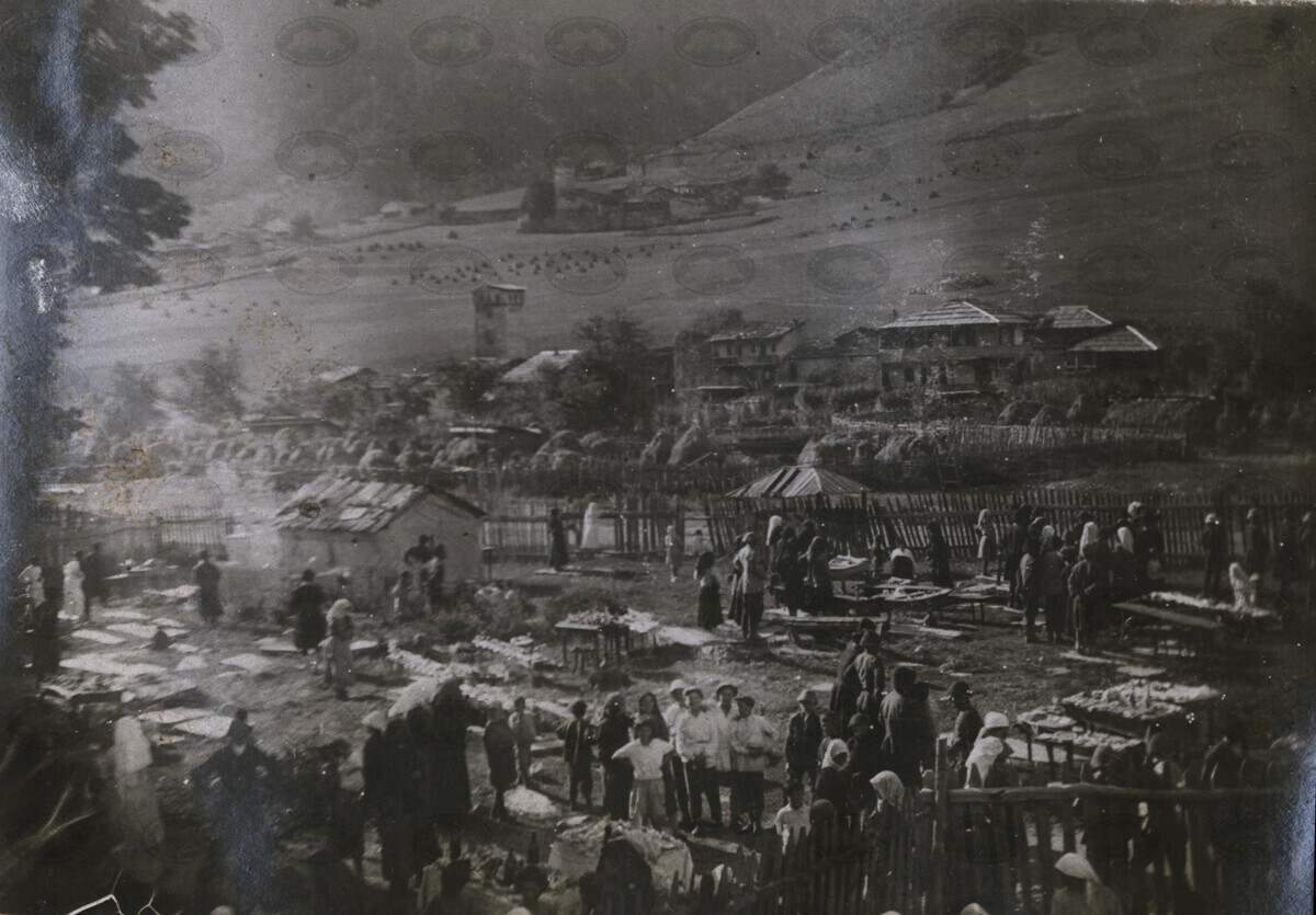 | ავტორისეული აღწერა: | Общий вид праздника ლიმერიე. Столы с явствами на кладбище | |