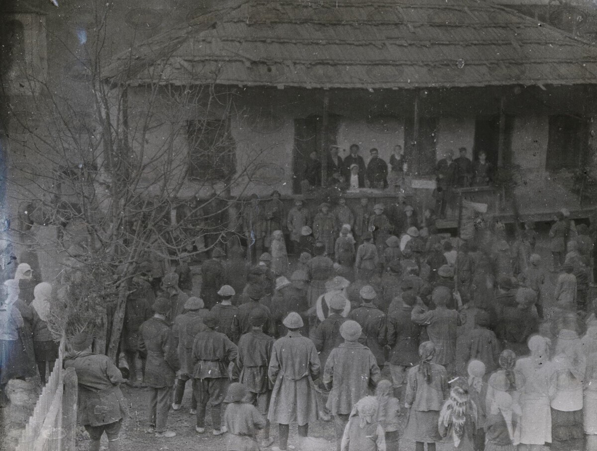 | შინაარსი: | ოქტომბრის დღესასწაული იფარის თემში. სკოლის მოსწავლე გოგონა ამბობს ლექსს, 1930წ. | |