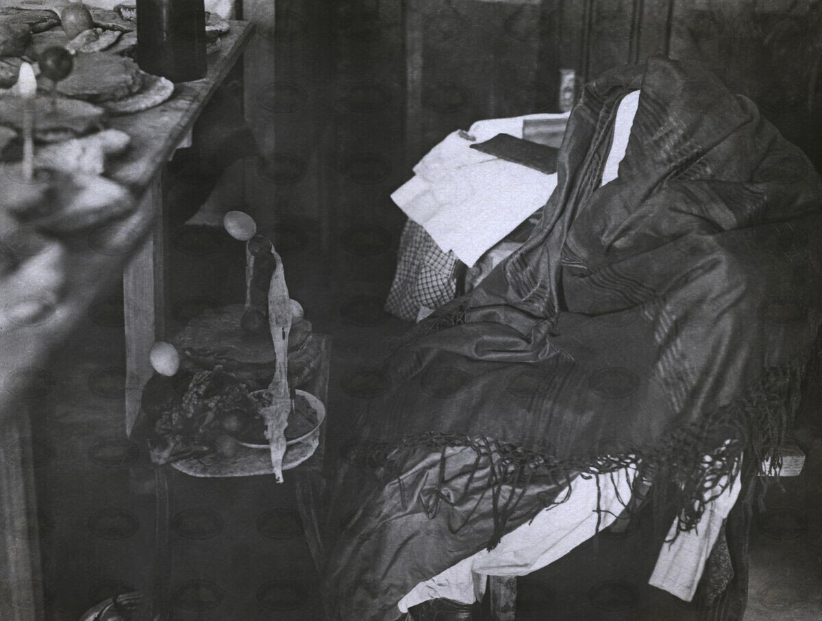 მაგიდა გარდაცვლილის თავთან; გარდაცვლილის საყვარელი საყოფაცხოვრებო ნივთებით და ...