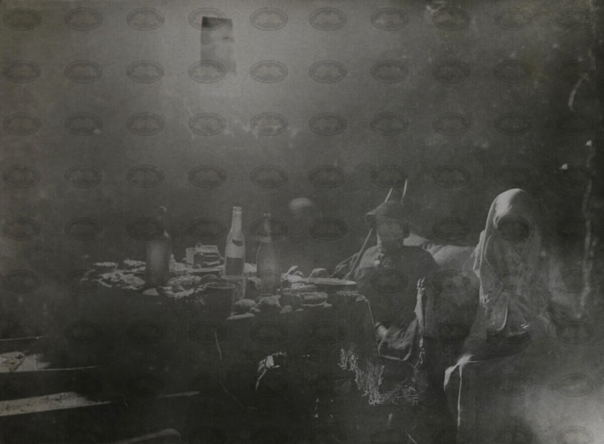 | ავტორისეული აღწერა: | Поминки ლაგუან. Рядом с изображением покойника сидит его живая жена, устраивающая эти поминки заодно с мужем и для себя. ლაგუან устраивают для себя живые и отделбно от мертвых, задолго до смерти, находясь в полном здравии. Посвящение на тот свет явств и других вещей производится священником | |