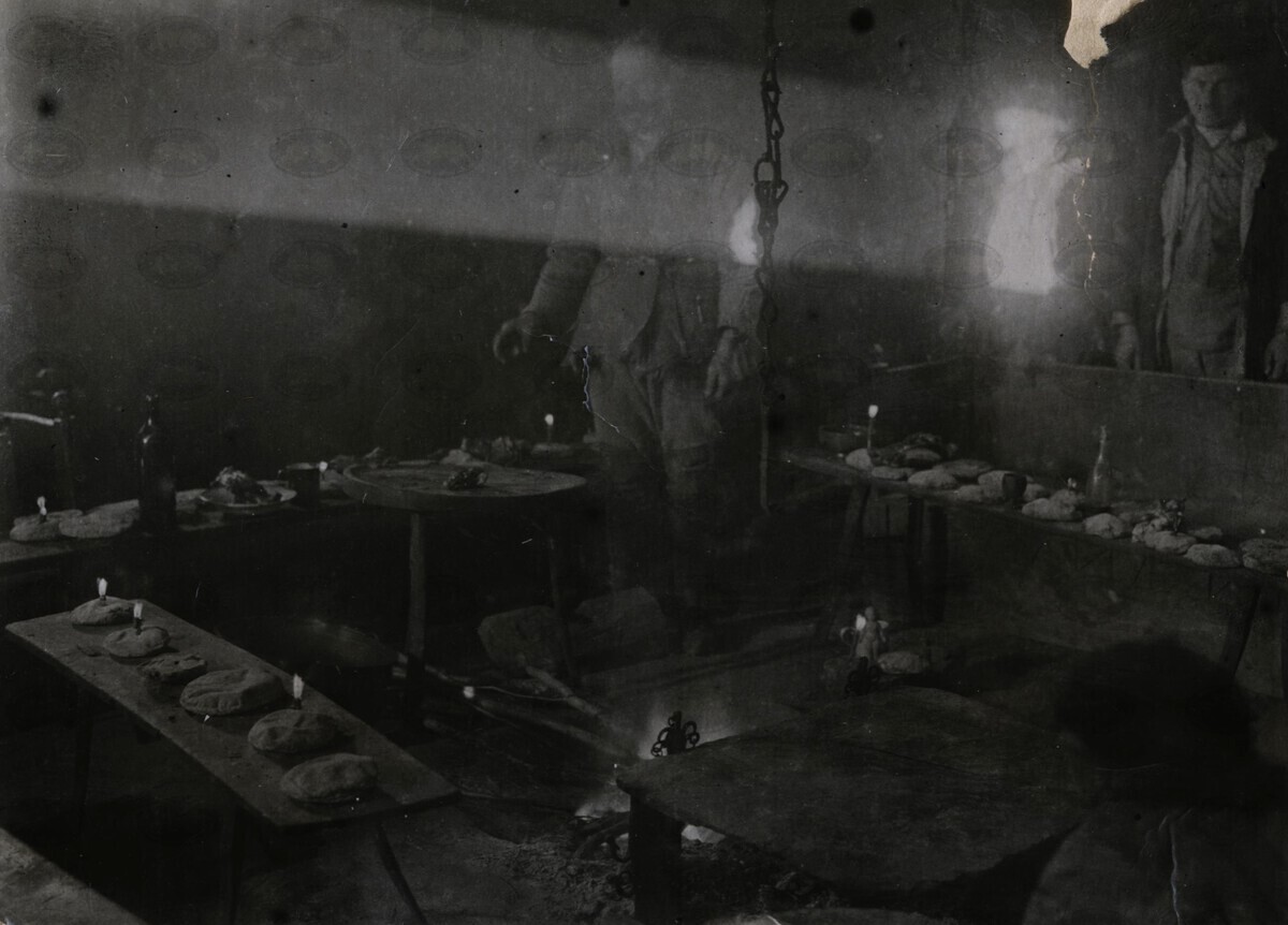 ფოტოზე აღბეჭდილია ტრაპეზი ლალცხატის მინდორში, დღეობა სიკობზე, მსხვერპლშეწირვის შ...