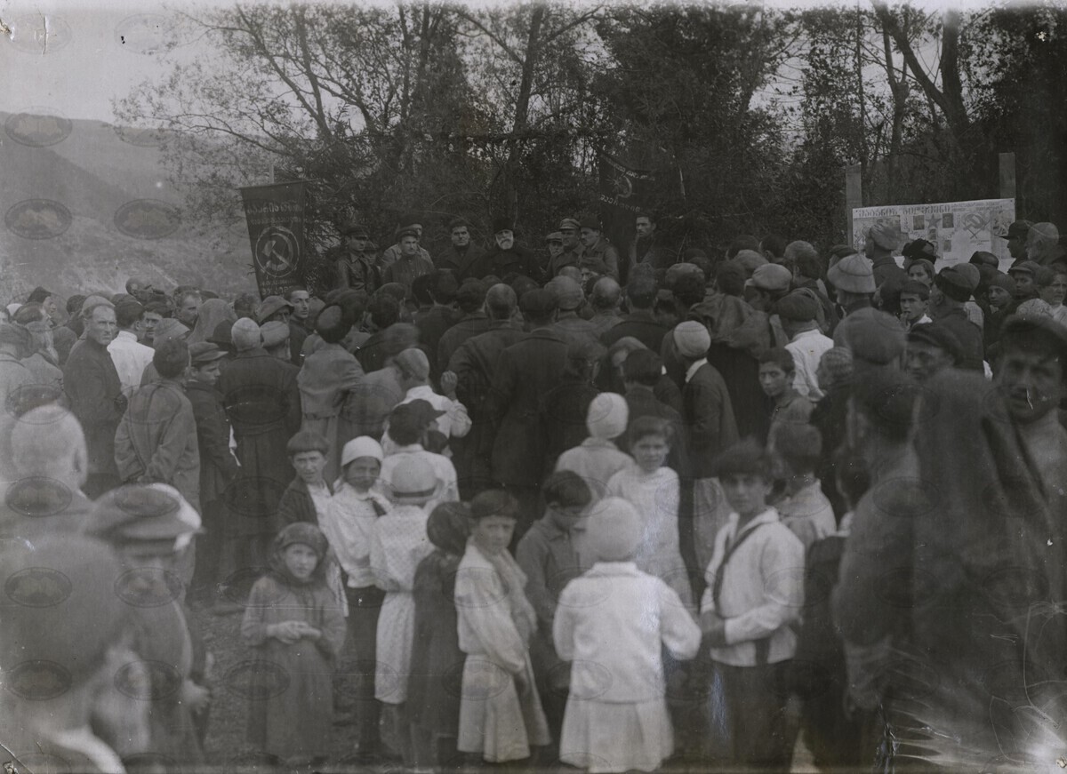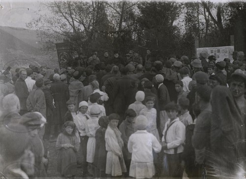 | ავტორისეული აღწერა: | Торжественное открытие к Октябрьским дням, 30 км. Верхне Сванской шоссейной лроги. На трибуне - председатель ЦИК-а Грузии Филлип Махарадзе | |