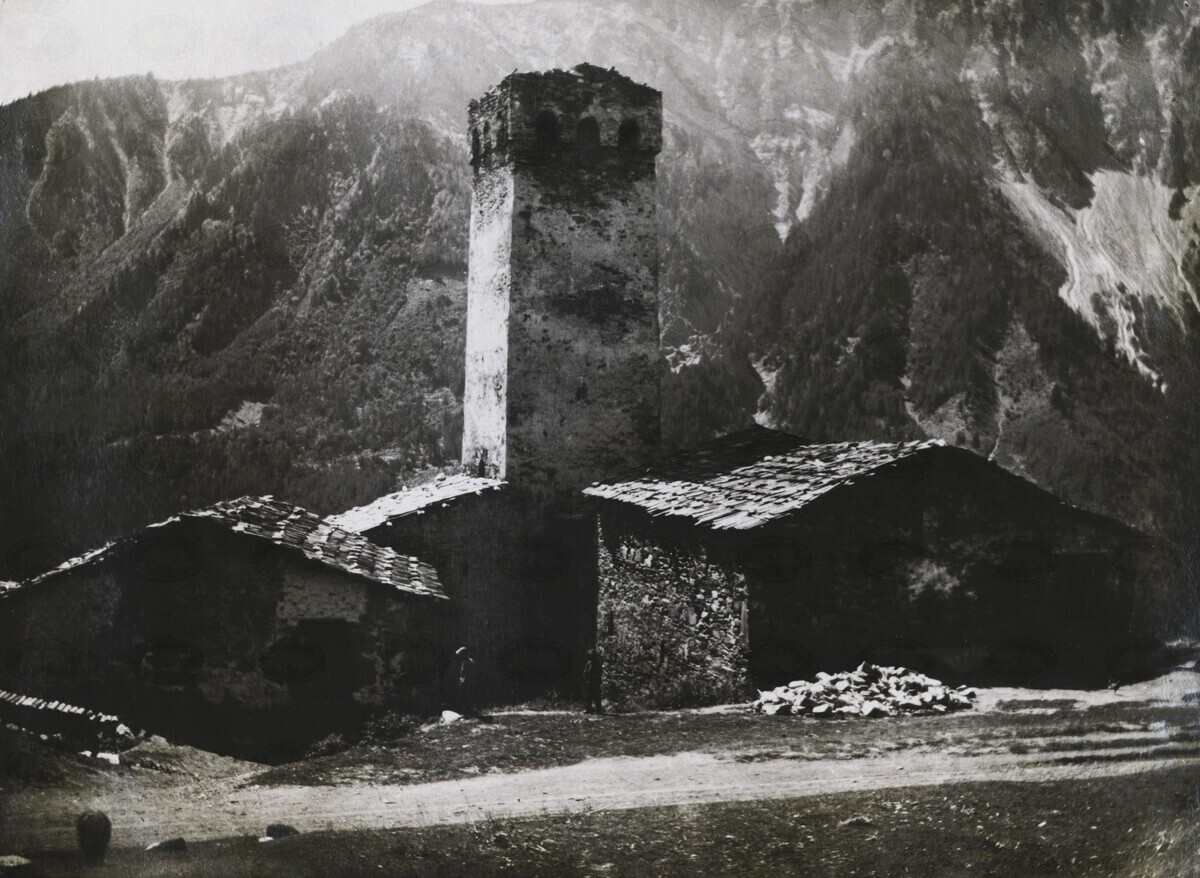 | შინაარსი: | ფოტოზე აღბეჭდილია რაჟდენ ქალდანის კოშკიანი საცხოვრებელი სახლი, მულახის თემის სოფ. ჟამუშში | |