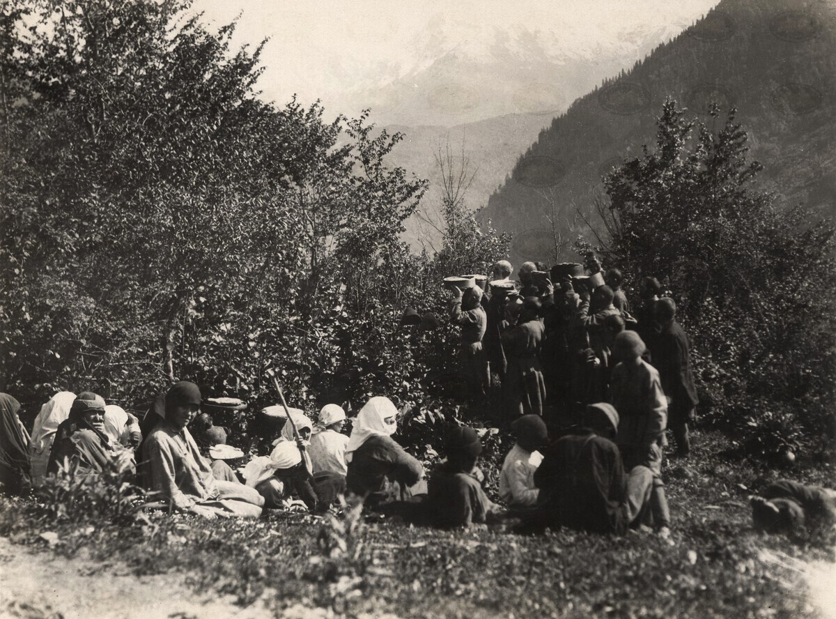 შესაწირი პურების დამზადება და მათი შეწირვა წმ.მუხის ძირში. ბეჩო ...
