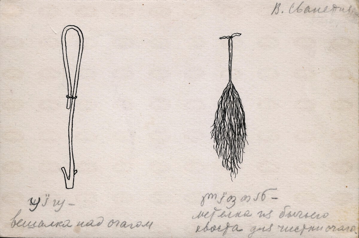 | ავტორისეული აღწერა: | ყაუ - вешалка над очагом ლაფთან - метелка из бычьего хвоста для чистки очага | |