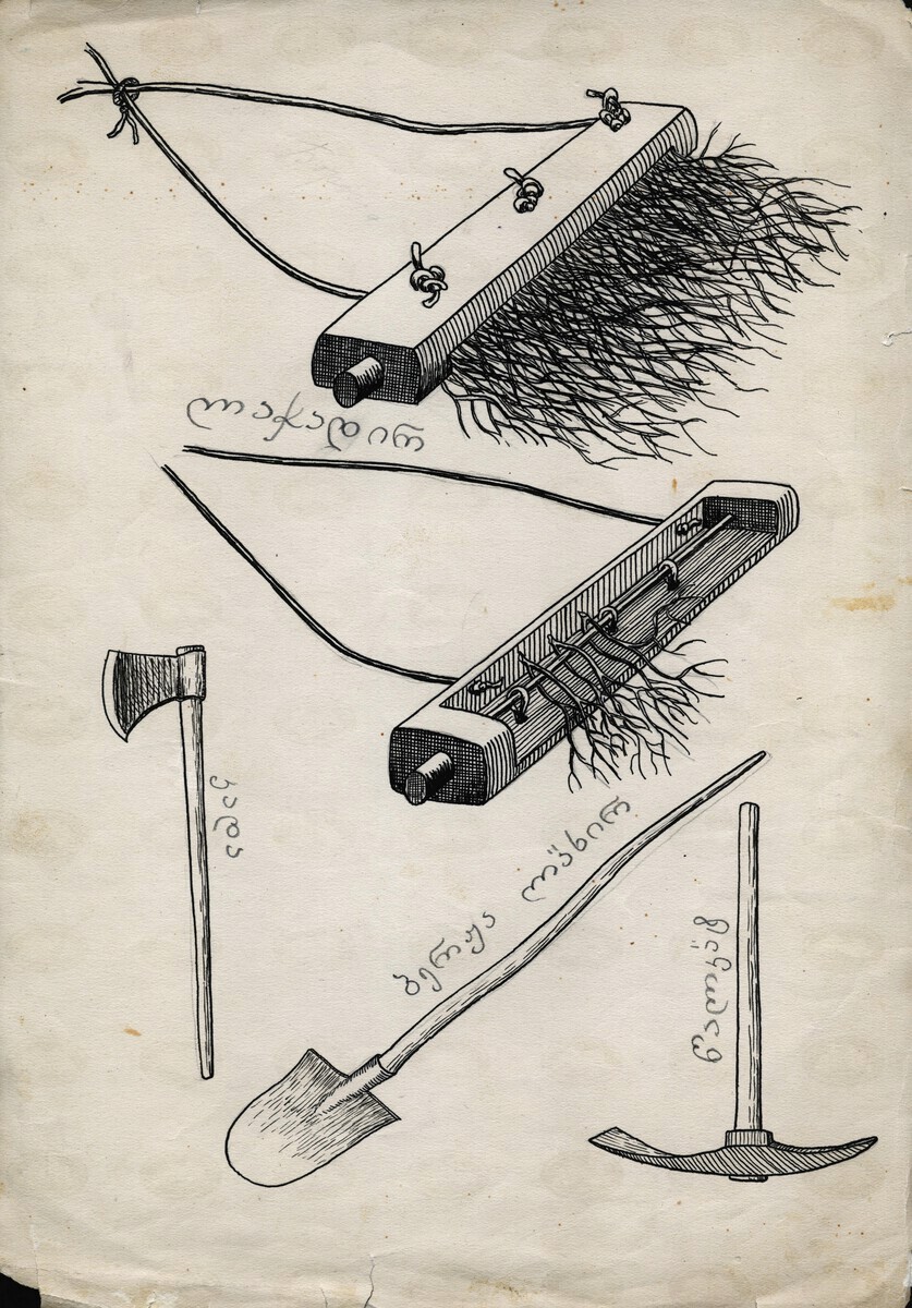 | შინაარსი: | შრომის იარაღები საფარცხავი, ნაჯახი, ბარი, წერაქვი | |