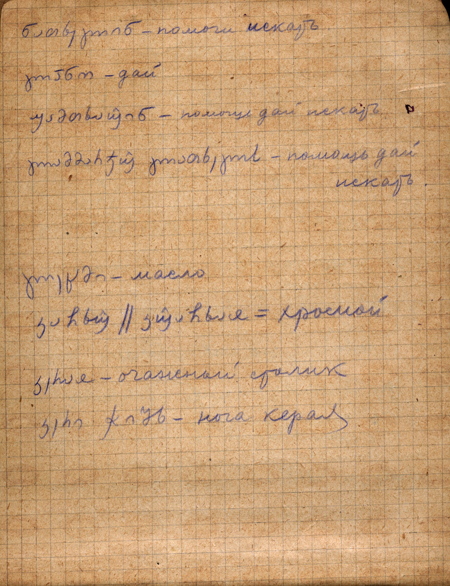 | შინაარსი: | თეთნე ფხუ, სიტყვების განმარტებანი დაწერილია ქართლი ანბანით სვანურად. განმარტებულია რუსულად | |