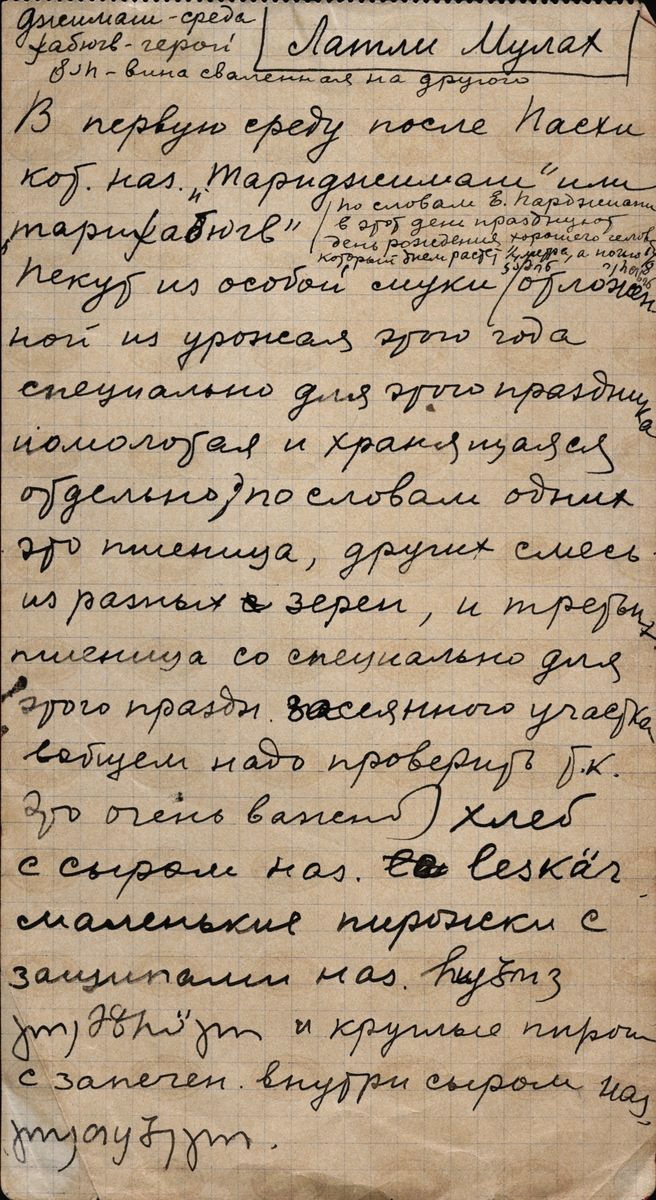 | ავტორისეული აღწერა: | მოცემულია ტარიჭაბუგვის // taritabűgv// tabgom-ის სახელით ცნობილი, აღდგომის შემდეგ პირველ ოთხშაბათს შესასრულებელი წესები | |
