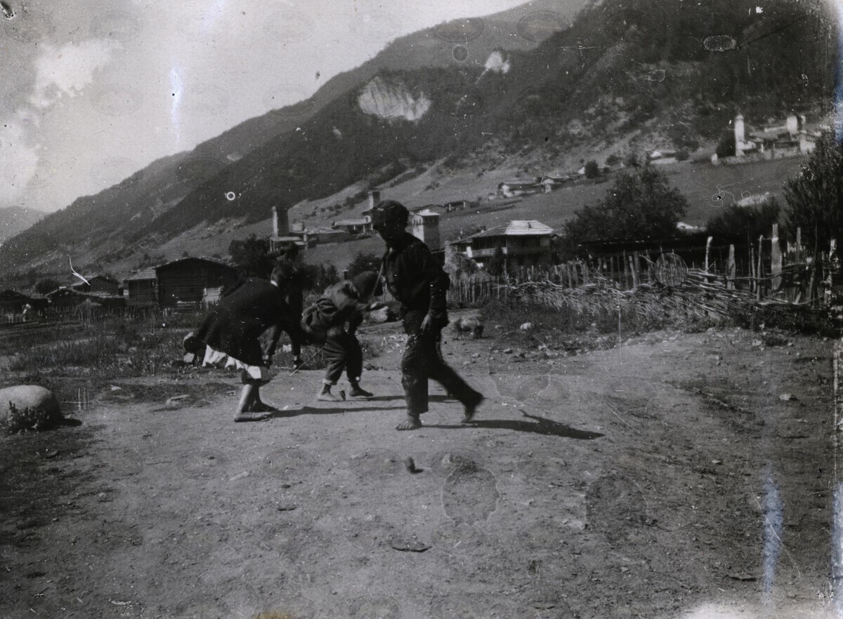 | ავტორისეული აღწერა: | Дети за игрой в деревянный волчок. Местия | |